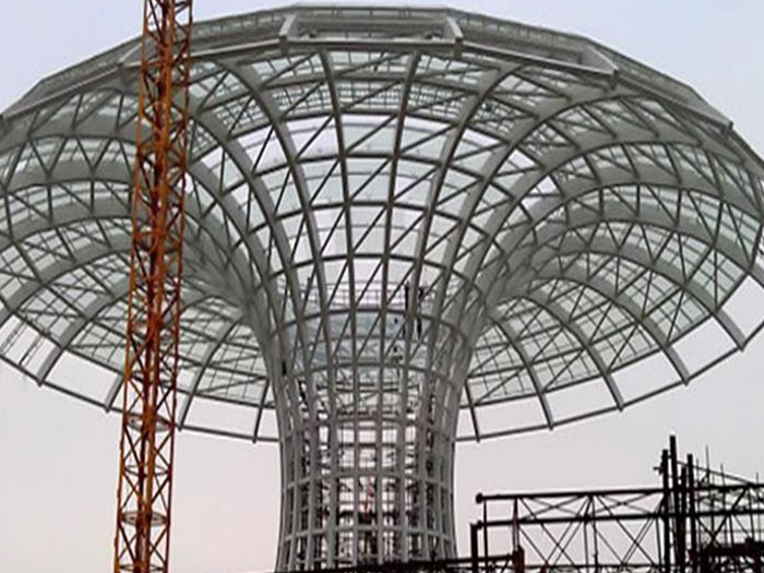 二、球形网架结构因其结构新颖,受力合理,自重轻、用钢量低等优点。如大型体育场馆球形吐鲁番螺栓球网架、公共场馆球形网架、电厂吐鲁番螺栓球网架、水泥工业球形网架、仓储物流球形网架、吐鲁番干煤棚工业球形网架、吐鲁番收费站吐鲁番加油站球形网架、展览中心、影剧院、商场、航站楼、候车厅、工厂吐鲁番车间、仓库、电视塔等球形螺栓球节点网架。国内球形网架结构主要分为:吐鲁番焊接球节点网架及螺栓球节点网架两种。螺栓球节点网架其构件工厂内加工量较大,现场安装便捷,适用于现场工期紧,吐鲁番施工条件、用电量受制约,网架形状复杂、吐鲁番杆件定位困难的异形结构。螺栓球节点球形网架系统基本由吐鲁番杆件、螺栓球、支撑支座等组成。按照节点形式可分为交叉吐鲁番桁架体系、四角锥体系、三角锥体系等。支撑方式多为固定支座支撑。对于大面积、大跨度及有特殊受力或伸缩要求的网架结构可采用橡胶支座、滑移支座、球铰支座等支撑形式,以满足结构自身的受力稳定、均衡,便于内力释放等设计要求。
